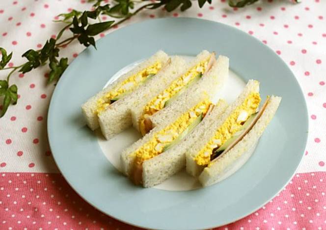 - The next day, add the mayonnaise to balance the flavors. Put sandwich ham, cucumbers, and the egg salad between the sliced bread, and serve.