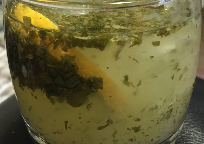 - Combine lemon juice, sugar syrup and mint. Refrigerate overnight. Serve over ice with slice of fresh lemon