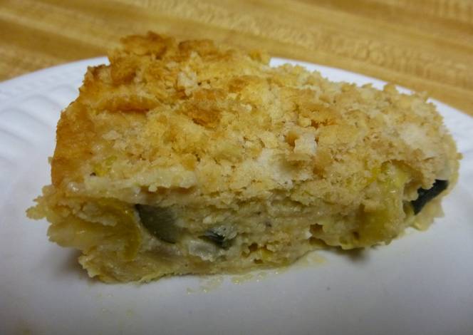 - Crush up remaining Ritz crackers and sprinkle evenly over the top. Bake at 350°F for 30 minutes. Let cool for 10 minutes and serve. Enjoy.