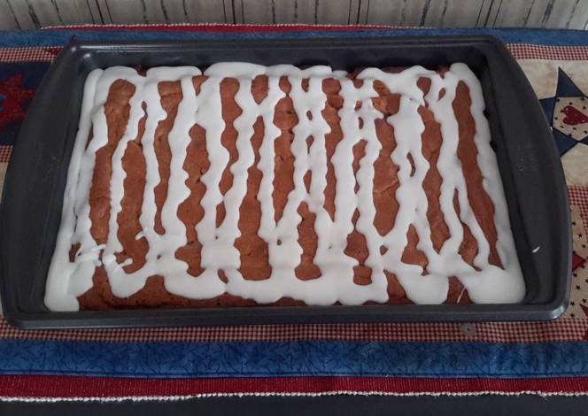 - Spread into greased 13x9 baking pan. Bake 45-50 minutes. 350° for light colored pans, 325° for glass or dark colored pans.