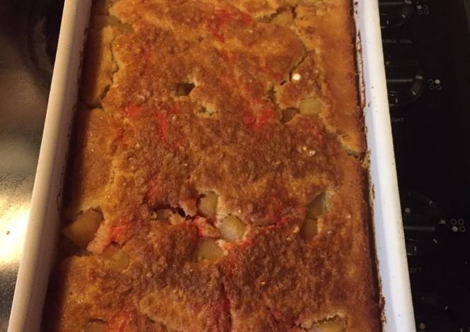 - In a medium bowl, stir together flour, white sugar, and milk until smooth. Pour batter into the prepared dish.