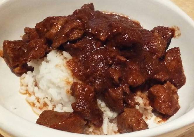 - Lastly serve this dish in a bowl place white rice in bowl and pour the Hog and sauce generously over the rice. Serve and enjoy. This dish goes well paired with a Corona or Tecate. Bon Apettit