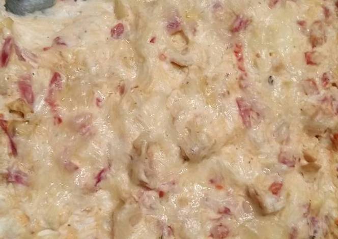 - When onion/ artichoke mixture is cool, mix with cream cheese mixture.