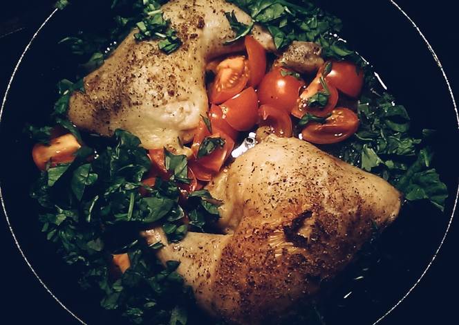 - Then add chopped tomatoes and spinach and cook for 5 more mins.