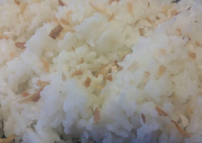 - Bring coconut milk to a simmer. Add rice and sugar. Bring back to a simmer. Cover. Simmer 15 minutes. Remove from heat and do not remove lid. Let steam for 5 minutes. Fluff with fork