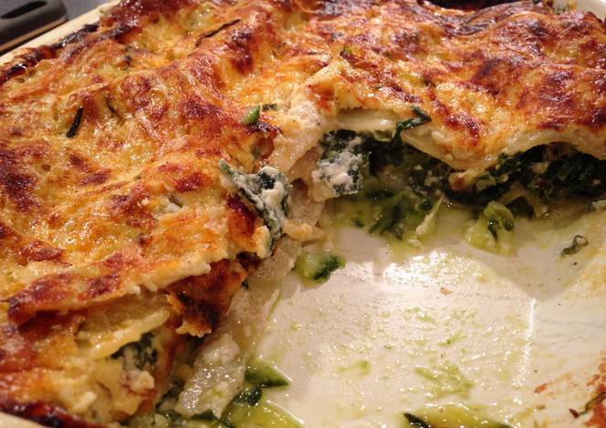 - Top the sauce with the spinach mixture, then another layer of lasagne sheets.