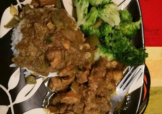 - Wash, cut chicken into cubes, season with all ingredients except curry.