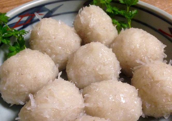 - Prepare a big pot of almost boiling water (very hot but barely simmering) and add some salt to the water. Wet your hands with a little water, take pies of the dough and form into balls. Put them into the hot water as you finish them. The dumplings can be as big or small as you like.