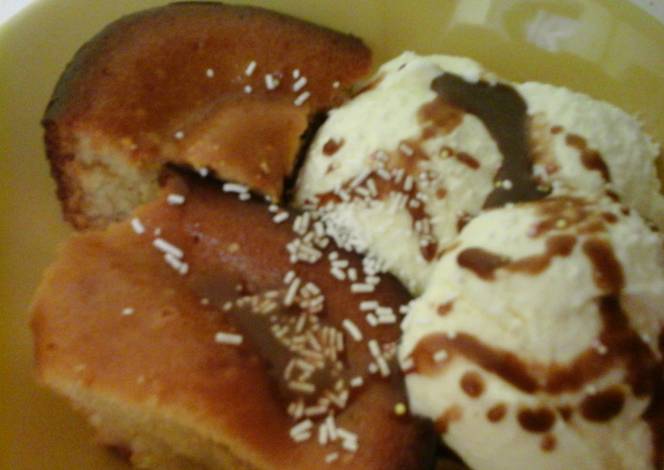 - Enjoy...hubby had his with orange cake and sprinkles with chocolate sauce.