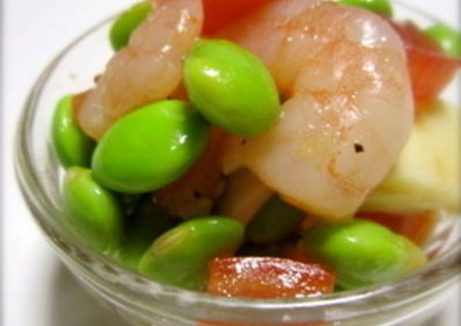 - Prepare edamame according to package directions. If you use frozen shrimp, prepare it as well.