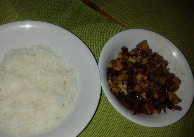 - Remove the pork and fry the garlic, spring onions and ginger in the pork fat oil.