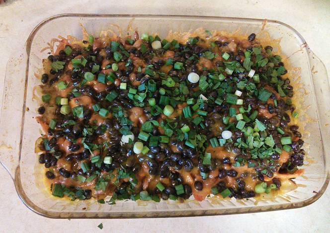 - Drain and rinse the black beans, then layer on top of dish.