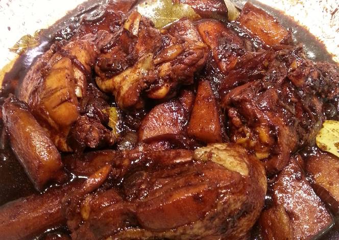 - Put soy sauce, bay leaves, 1 cup of water and peppercorn. Boil it for 30 minutes or until the chicken is tender.