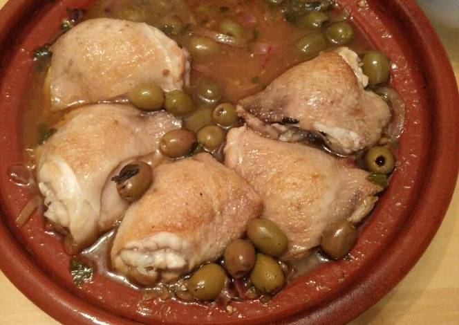 - Now, put tagine into oven at 180 or if you can leave on hob on low heat for 45 mins or until the chicken is cooked through and has clear liquids (no red). If you are using a pan at this time, you will need a lid for it that seals well. You can always wrap some foil around the seal to help. Leave the pan on low heat.