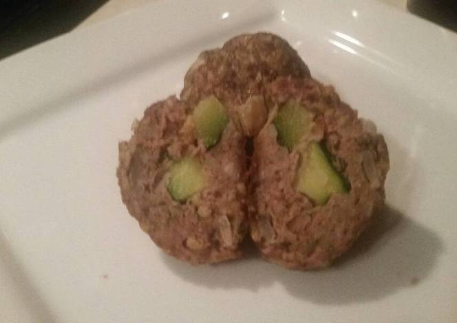 - Grab a few pieces of zucchini and surround with meat mixture. Roll into small balls.