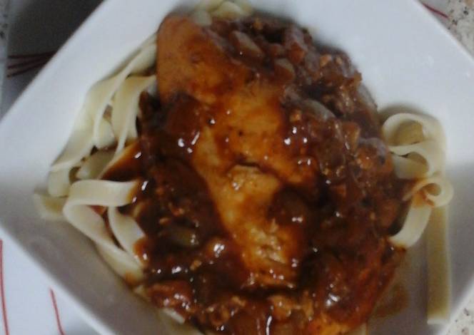 - Add to a serving dish and serve hot on a bed of noodles. I used tagliatelle, but any pasta would do.