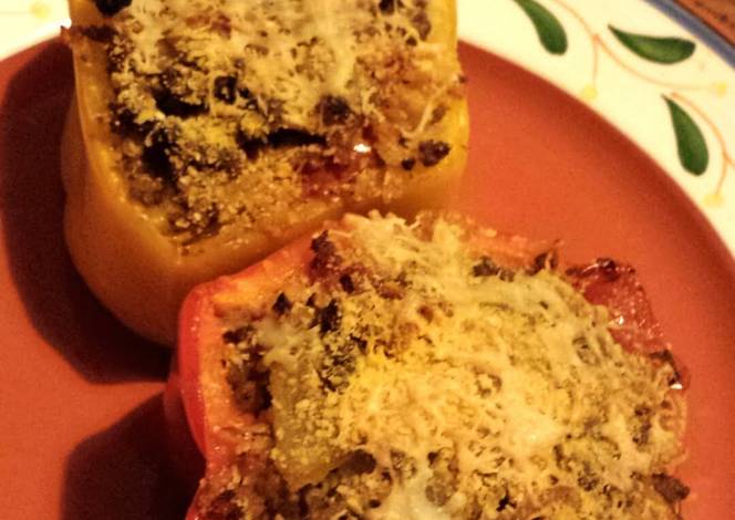- Arrange peppers in pan and bake in oven at 350 for about an hour