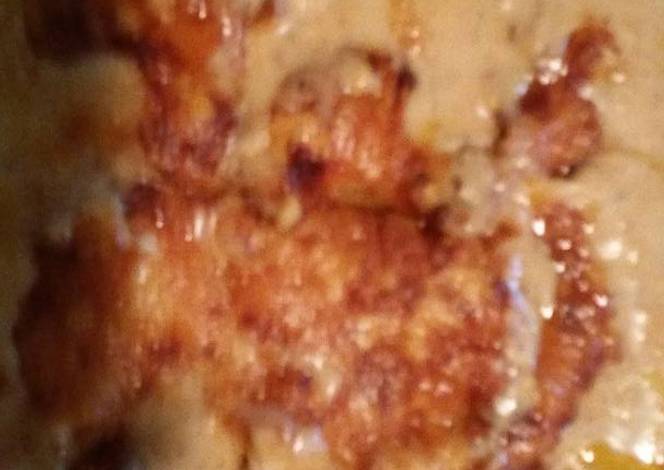 - Remove chicken from oven and drain most of the water then pour sauce evenly over chicken. Spread 1 cup of mild cheddar cheese over sauce.