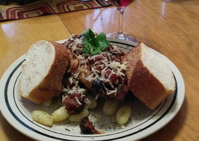 - Serve Chicken over top Peppered Gnocchi, top with Red Sauce. Sprinkle fresh asiago for the finishing touch. Pair with a mellow Chianti and enjoy!