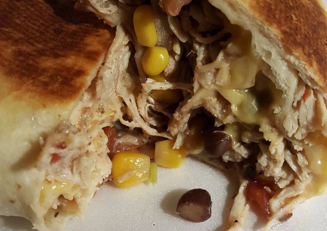 - With a slotted spoon, scoop the mixture onto the tortilla, making sure the least amount of juice gets in the tortilla. Sprinkle cheese on top. You want to leave 3/4 to 1 inch on each end for accurate folding.