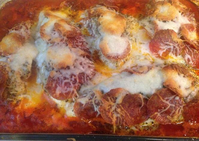 - Cover chicken breast in pepperoni