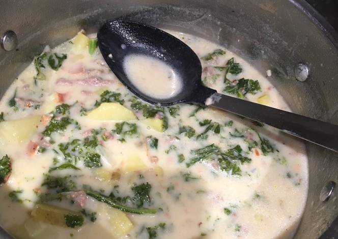 - Add kale bring to a simmer and turn heat off and cover pot with lid for 5 minutes. Then Enjoy!
