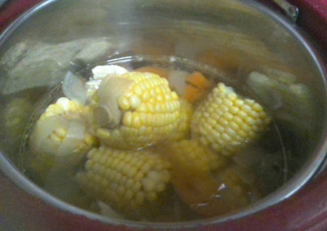 - In a separate pot, bring the water to boil, then add in the ingredients. Bring to low heat and let the soup simmer for around 1hr.