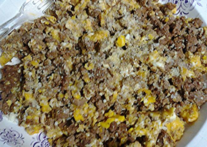 - crack your egg and partially cook then mix with sirloin mixture.