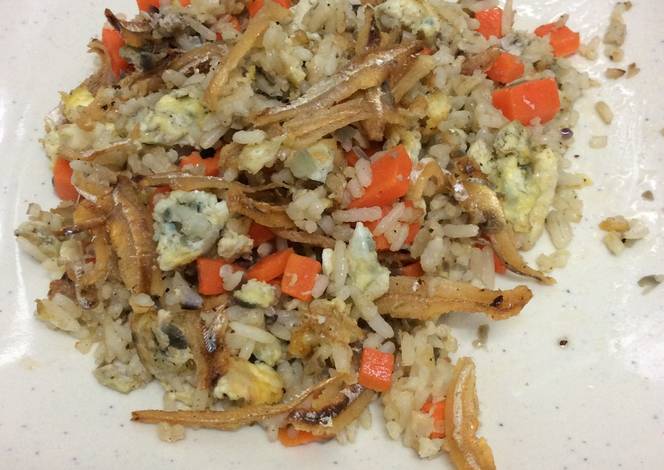 - Taste the fried rice. Put in the fried anchovies. Put the heat away. Done
