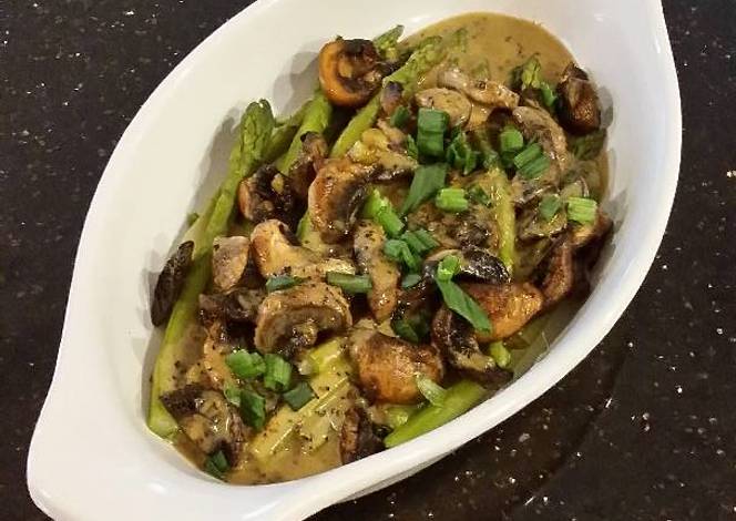 - Pour sauce over asparagus and mushrooms
