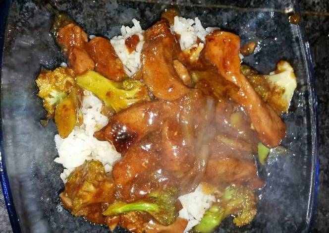 - Add water to rest of marinade. Add vinegar and honey, stir. Add corn starch, stir.