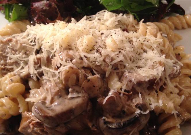 - Add the garlic to the mushrooms, if using, and a squeeze of lemon juice, then stir in the cream and a handful of grated Parmesan. Drain the pasta and stir in to the mushroom sauce. Check for seasoning.