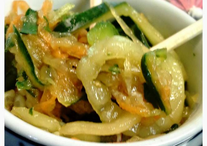 - Run your cucumber and carrot through a mandolin to make "noodles"
