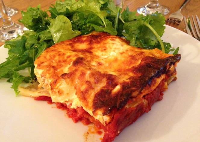 - Once the tomato sauce is thick, check for seasoning and remove from the heat. In a bowl mix together the creme fraiche, eggs and Parmesan for the topping, loosen it with a little water and season to taste. Jamie adds two anchovies to his version but I didn"t this time. Preheat the oven to 180C/Gas 4.