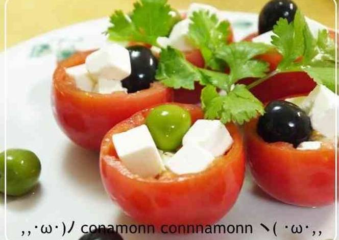 - Drain off the liquid, slice the "cheese" and arrange with tomato slices to make a salad. The sliced "cheese" also goes well with wasabi soy sauce.