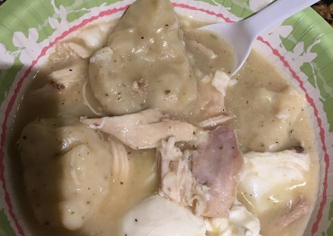 - Now cook dumplings in chicken broth according to back of box bisquick (I usually boil 10 minutes uncovered on med simmer, then covered on low simmer 10 minutes ...-2 cups bisquick and 2/3 cup of milk)
