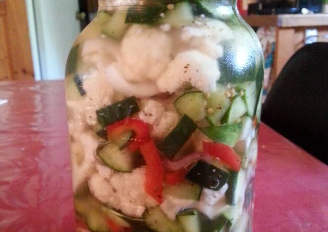 - Divide your pickled vegetables into 2 jars and cover with the liquid left in the container.